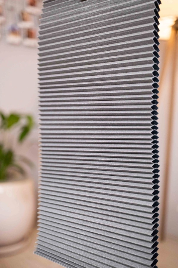 Honeycomb Blackout Plise Perdeler, çift katlı özel yapısı sayesinde tamamen karartma sağlar ve üstün ısı yalıtımı sunar. İç yüzeyleri alüminyum folyoludur, bu sayede yazın sıcağı, kışın soğuğu engelleyerek enerji tasarrufu sağlar.