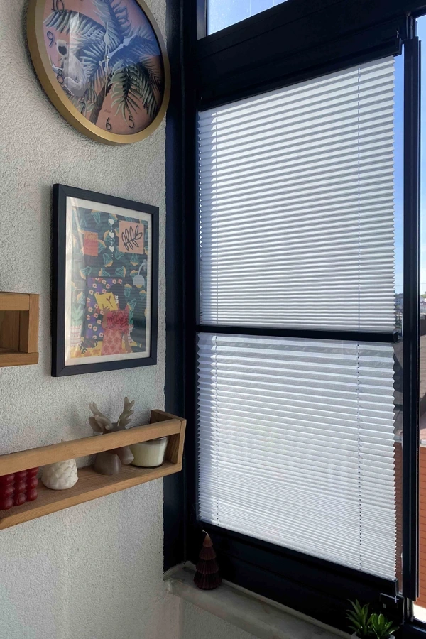 🔹 Alt Kumaş: Tül Plise Perde – Gündüz dışarıyı görmenizi sağlar, ferahlık sunar.